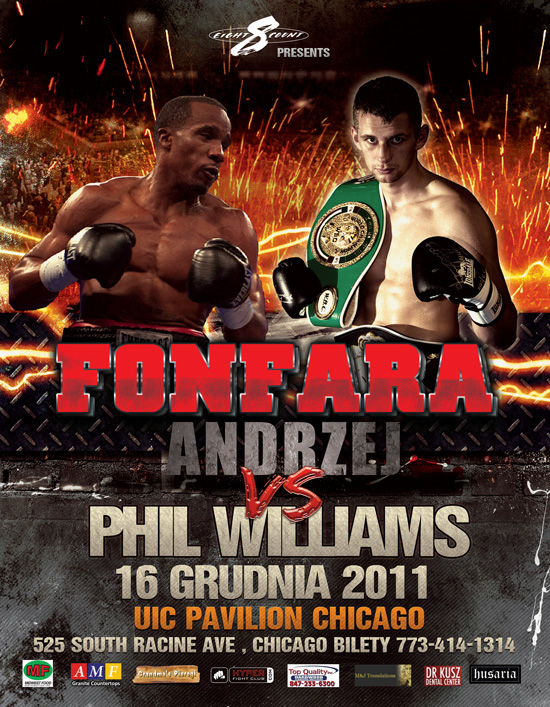 – „Będzie to na pewno ciekawe starcie, Williams przegrał ostatnie 4 walki, więc będzie robił wszystko, żeby wygrać. Andrzej zaś będzie chciał zakończyć bardzo dobry bokserski rok wygrywając pojedynek”- komentuje Sam Collona, trener Fonfary. Dziesięciorundowy pojedynek