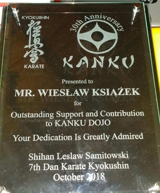 „Cześć Wam! Mam Wiesiek nadzieję, że będę mógł tę plakietę wręczyć ci osobiście, bo taki był plan na wczorajszy wieczór./…/ Podziękowałem ci zaocznie za wszystko co dla nas zrobiłeś, poinformowałem jak przez wiele lat rozsławiałeś imię KANKU i ich uczniów i dostałeś gromkie, szczere brawa. Jednocześnie wszyscy życzyli ci szybkiego powrotu do zdrowia po tej kontuzji”.