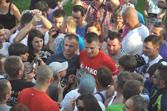 Tomasz Adamek, który od tygodnia przebywa w Polsce , w ostatnią sobotę, 30 czerwca wziął udział w pokazowym meczu na Stadionie Miejskim w Krasnymstawie; Przyjaciele Piotrka Gołąbka kontra Przyjaciele Jedynki.