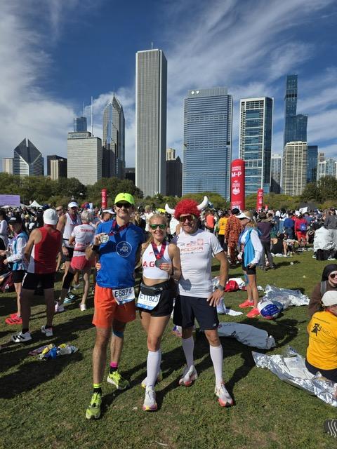 PS> Jeśli chodzi o Chicago Marathon, to przebiegłam z czasem 3:34; był to mój drugi najlepszy czas jak do tej pory. Lubie energię naszego miasta kiedy my biegacze( około 50 tys) razem z milionową frekwencja kibiców spotykamy się corocznie w centrum Chicago. Dla mnie byl to już czwarty bieg podczas tego Major Marathon. Pogoda nam dopisała, było może nawet za ciepło ale każdy z naszych biegowych przyjaciół ukończył bieg i zdobył upragniony medal. Już po samym biegu spotkaliśmy się pod literką P jak Poland ( post race party area) by razem ze swoimi bliskimi celebrować nasz kolejny sukces