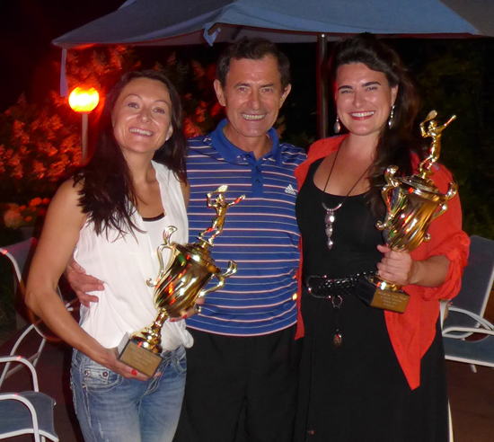 Zakończenie Mistrzostw – zwyciężczynie wsród pań z trofeami. Od lewej: Sylvia Orawiec (I miejsce), Katarzyna Szram (II miejsce). W środku organizator B. Orawiec;