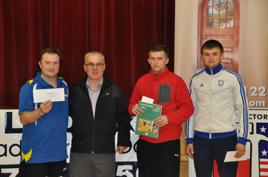 Najlepsi w kat, zaawansowanych – od lewej Wojciech Wolski, przedstawiciel PACBA Adam Grabowski, Artur Kurek, Viktor Bedrichuk.