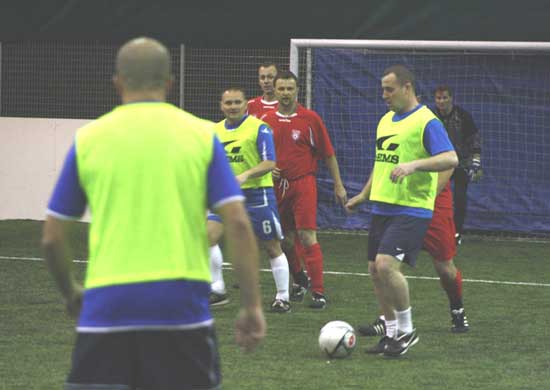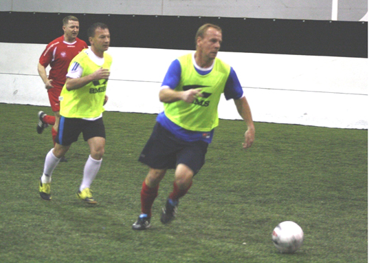 Prawdziwe emocje zaczęły się w drugiej połowie. Dwie kolejne bramki zdobyła Wisła i przy stanie 3-1 mogła rozstrzygnąć spotkanie na swoją korzyść. Oto Marek Wiśniewski wymanewrował obrońcę i bramkarza Janusza Bosowskiego, podał do środka do Jarka Potapy, a ten z dwóch metrów nie trafił do pustej bramki! Mogło być 4-1 i chyba… po meczu. Wnik 3-1 utrzymywał się jeszcze na 5 min. przed zakończeniem gry. Później jednak trzy kolejne bramki zdobyli Champions, wychodząc na 4-3. Wisła wyrównała na 4-4, ale w samej końcówce zwycięstwo Champions przypieczętował pięknym uderzeniem z pierwszej piłki Bogdan Żurowski.