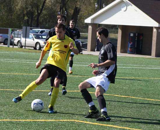 Przy piłce Kamil Bober, zdobywca dwóch bramek, chyba najlepszy zawodnik w tym meczu