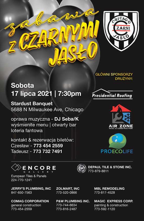 Młodzi zawodnicy zespołu under-23 Czarnych Jasło mają nadzieje przy-nieść na sobotni bankiet klubowy do Stardust Banquet przy 5688 N. Milwaukee Ave  puchar po wygraniu finału.  Na bankiet organizatorzy mają jeszcze wolne miejsca, informacje u Tadeusza Ciężkiego, tel.. 773 732-7491