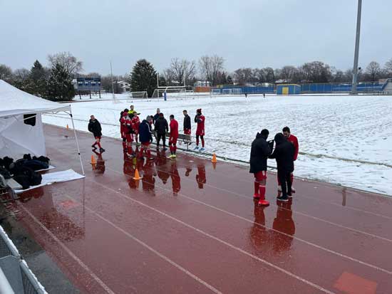 Podczas weekendu rozpoczęły występy w ogólno amerykanskej lidze UPSL dwa nasze zespoły – Eagles i Czarni Jasło. Sobotnie spotkanie Eagles z FC Tryzub na boisku Wheeling High Schol trwało tylko 25 minut. Na boisku zalegała warstwa co najmniej trzech cali mokrego, ciężkiego śniegu i trudno było w ogóle kopnąć piłkę. A jednak spróbowali. W tych antywarunkach Tryzub prowadził nawet 1-0. Kiedy jednak w 25 min bramkarz Eagles Krystian Sroka doznał poważnej kontuzji, trener Paweł Otachel polecił zespołowi opuszczenie boiska.