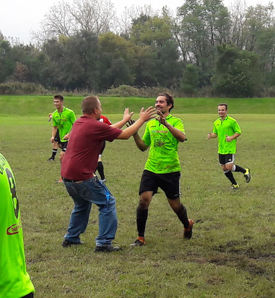 Pięć minut później padło wyrównanie. Prezes Podczerwnego Tomek Kowalczyk gratuluje zodobywcy bramki
