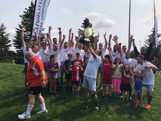 Dwa zespoły AAC Eagles wywalczyły w sobotę na doskonałych boiskach Techny Park w Northbrook Puchary Stanu. Pierwszy zespół był faworytem finału z Vikings i nie zawiódł, wygrywając kat, open. Wcześniej Eagles over-40 w finale tej kategorii nie dał szans drużynie Torino. Warto podkreślić, że w półfinale over-40 Eagles uporał se z aktualnym mistrzem Ameryki tej kategorii – Jakes Stars. Nie powiodło się jedynie Eaglesowi over-30, który w finale przegrał Levskim. Była to porażka na własne życzenie, bowiem trudno zliczyć ilość sytuacji bramkowych, których Eagles nie potrafił wykorzystać.