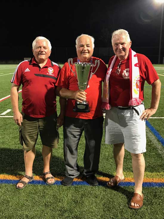 IMG954115Prezes honorowy klubu – Jozef Zyzda z pucharem; obok skarbnik Bonifacy Wróbel i  wiceprezes Mirek Gębka