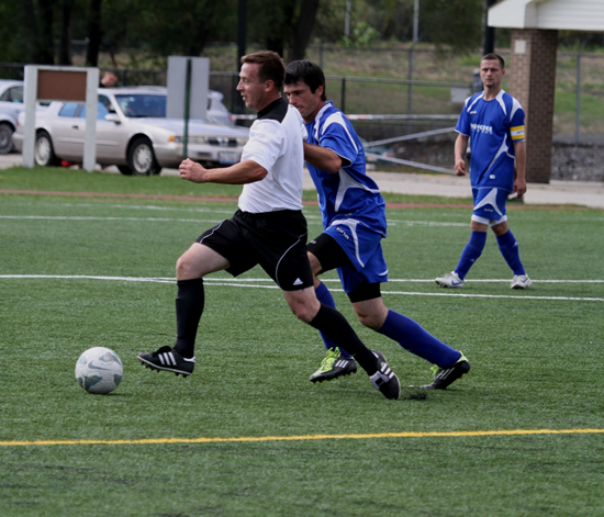 Tomek Duniec tym razem nie na ławce trenerskiej, ale na boisku                 Zdjęcia – Jacek Jówko