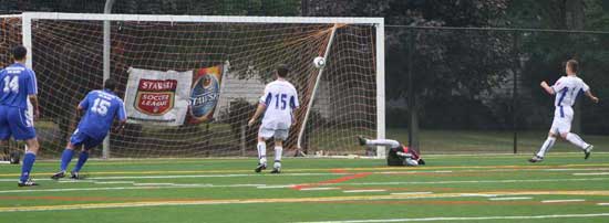 Tak padla pierwsza bramka w meczu Polonez – Igloopol 2-2; zdobył ją niewidoczny na zdjęciu Sebastian Jarmuła Foto – Jacek Jówko