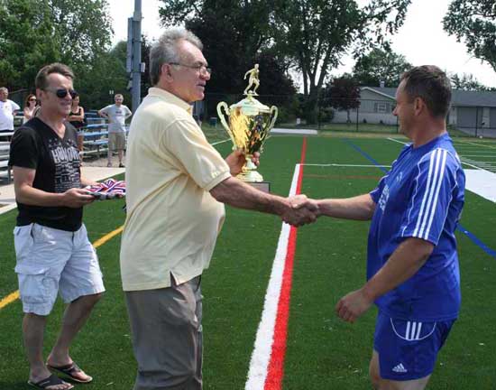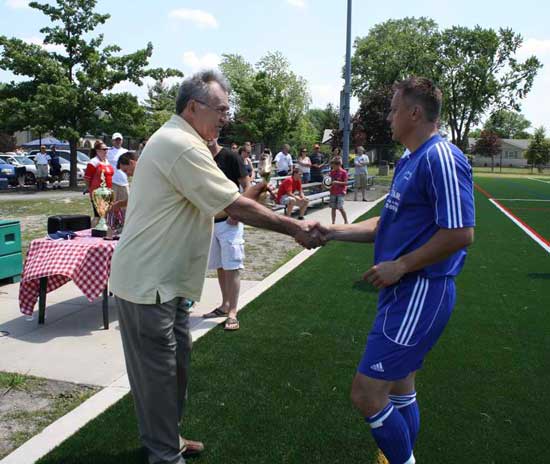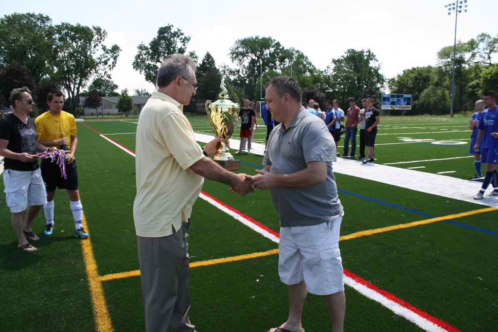 W przerwie między spotkaniami,  nastąpiło oficjalne zakończenie sezonu ligowego. Puchary i medale dla trzech najlepszych zespołów – Capitolu Czarnych Jasło, Poloneza i  Iglopololu oraz trofeum dla króła strzelcow – Wojtka Kapuścika z Poloneza wręcza przedstawiciel Federacji stanu Illinois w toarzystwie prezesa Ligi Marka Serafina oraz wiceprezesa ligi – Darka Zajdela.