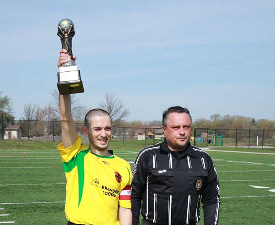 Laureat nagrody fair play – Marcin Kurjata (Nafta) z Dąbrovii i arbiter Wojtek Myrda, który  w imieniu Kolegium Polskich Sędziów przekazał magrodę