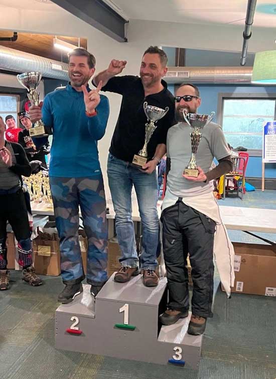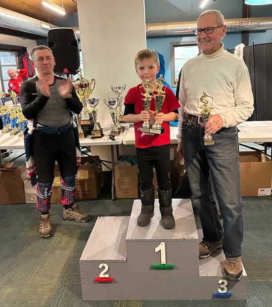 Najmlodszy 6.5 letni uczestnik – Marek Płoskonka na podium z ojcem, zdobywcą trzeciego miejsca, Michałem Płoskonka. Po lewej wiceprezes klubu TATRY – Piotr Mądrzyk