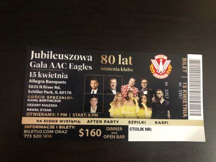 Wprawdzie 80 lat istnienia AAC Eagles mieliśmy w 2020 roku, ale dopiero teraz ten jeden z najstarszych, najbardziej zasłużonych kluchów poza granicami Polski zaprasza na Jubileuszową Galę. Odbędzie się ona w sobotę 15 kwietnia w Allegra Banquets przy 5035 N River Rd w Schiller Park,