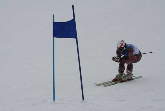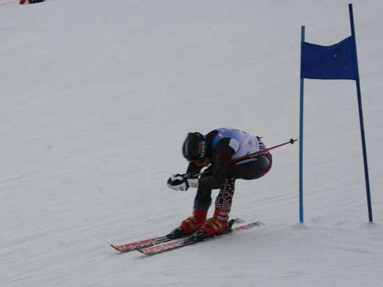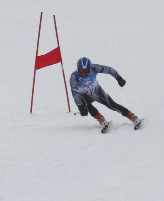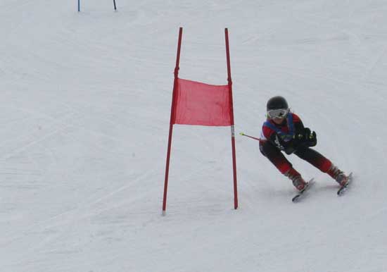Szymek Gąsienica w walce o setne cześci sekundy szusuje do mety