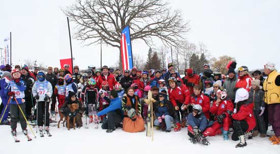 Zbiorowe zdjęcie uczestników narciarskich mistrzostw Polonii tuż przed startem