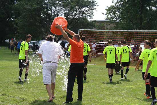 Trener zwycięskiego teamu Bogdan Zawadzki nie uniknął wodnej kąpieli