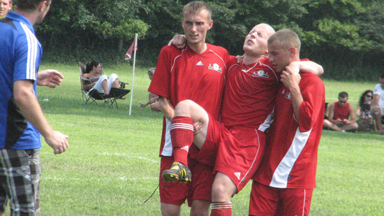 Tuż przed końcem meczu kontuzji doznał obrońca Stawskiego – Wojtek Rogoż