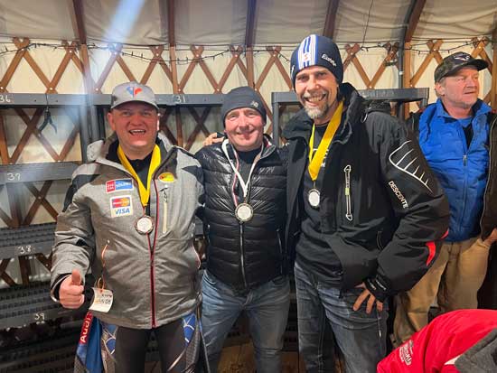 W dobrych humorach i z medalami narciarze klubu TATRY w Sunburst. Od lewej – Bogusław Hreska, Ryszard Długosz i Marcin Mitka