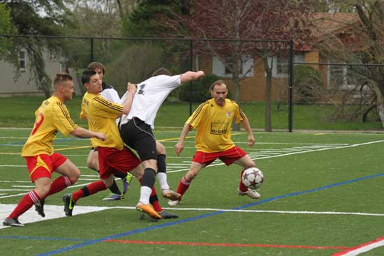 V kolejka rundy wiosennej w Stawski Soccer League nie przyniosła zmian w czołówce tabeli. Czarni Jasło wygrali pewnie z Jagiellonią, a Polonez także zdobył komplet punktów, chociaż z trudem po słabym występie pokonał Hetmana. Oba prowadzące zespoły maja po 25 pkt, z tym ze Czarni Jasło jeden mecz mniej rozegrany. Na trzeciej pozycji umocniła się Dąbrovia, natomiast na czwarte awansował Igloopol, spychając Jagiellonię na piąte miejsce. Zastanawia wyraźny spadek formy „Jagi”, a planowane na koniec sezonu miesjcena podium coraz bardziej się oddala.