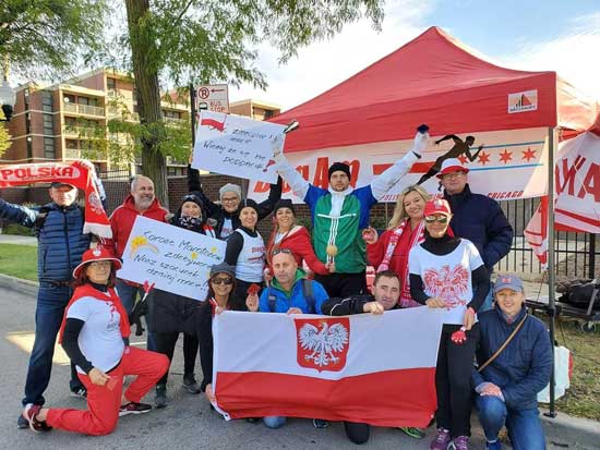 Wśród 45.000 uczestników ostatniego Maratonu w Chicago byli i rodacy. Czy doczekamy się kiedyś sukcesów polskich biegaczy w tym słynnym biegu? Przypomnijmy, iż najbliżej triumfu byli: Antoni Niemczak, który zajął drugie miejsce, przegrywając walkę o zwycięstwo na ostatnich kilku metrach, a wśród kobiet Wanda Panfiil, czwarta na mecie i to w okresie kiedy uznawana była za najlepszą maratonkę świata. Ale to było przed blisko 20 laty! W ostatnim chicagowskim maratonie startowała ponad 10-sobowa grupa polonijnego „Bieg-Am Group” na czele z jej prezesem – Damianem Bednorzem. Dla niego był to 11-ty start w tym maratonie, a w ogółem był to jego już 42-gi maraton.