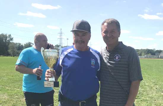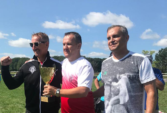 Puchar-Ligi-4Ryszard Bury z pucharem dla Orawy, obok prezes ligi – Tomek Grela
