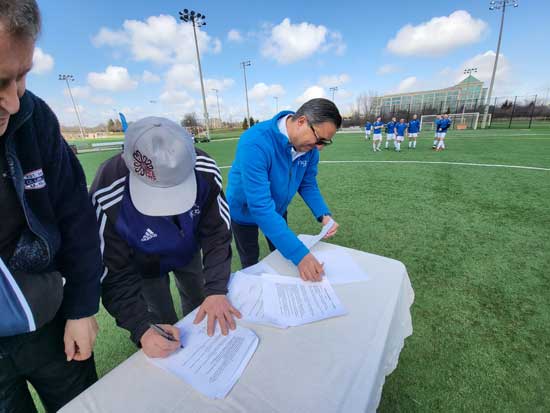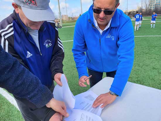 Po rozegraniu pierwszych dwóch spotkań, nastąpiło uroczyste podpisanie umowy z nowym sponsorem ligi , którym została firma Sting TV. Obowiązującą na trzy lata umowę podpisali – z ramienia ligi prezes Tomek Grela i członek zarządu, szef polskich sędziów w Chicago Zdzisław Kujawaa, a z ramienia sponsora – dyrektor Satelite Dish – Rafał Stykowski. Na początek sponsor przekazał wsszystkim zespołom ligi piłki.