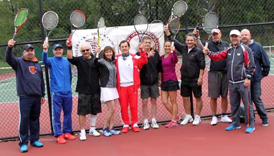 2.  Rakiety polonijnych dziennikarzy i lekarzy. Od lewej: S. Puszkarski, J. Dańko, A. Moniuszko, H. Anioł, B. Orawiec (organizator), P. Włodarczyk, H. Kosińska, A. Stachnik, D. Wiśniewski, E. Jarząbek, P. Dąbrowski