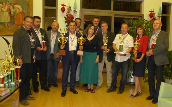 .    Pamiątkowe zdjęcie uczestników z trofeami i medalami
