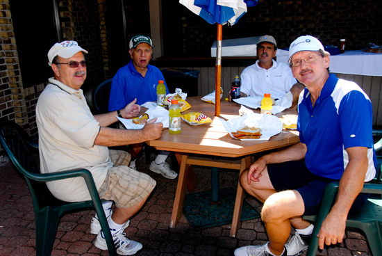 Spotkanie prezesów na golfowym polu – drugi z lewej prezes Podhale Golf Club -Stanley Strama, obok prezes PAGC – Marek Placek, pierwszy z prawej triumfator kat. net – Adam Kieta , pierwszy z lewej – Gary Pęksa