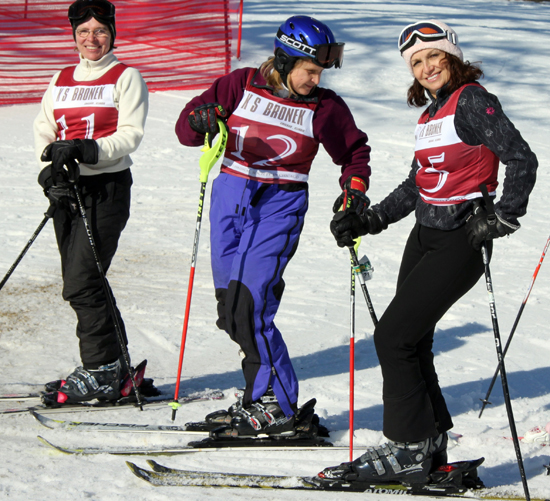 Najlepsze zawodniczki XXI Polonijnych Mistrzostw Lekarzy w Narciarstwie Alpejskim KS „Bronek”. Od lewej: Jolanta Kloc (III), Irena Gula (I), Halina Anioł (II).