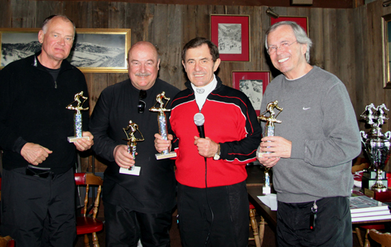 Zakończenie. Grupa starsza panów z trofeami. Od lewej: Józef Mazurek (IV), Antoni Piergies (II), Bronisław Orawiec (I), Wojciech Łysiński (V). Wilmot Mountain Ski Resort, Iron Kettle Bar.