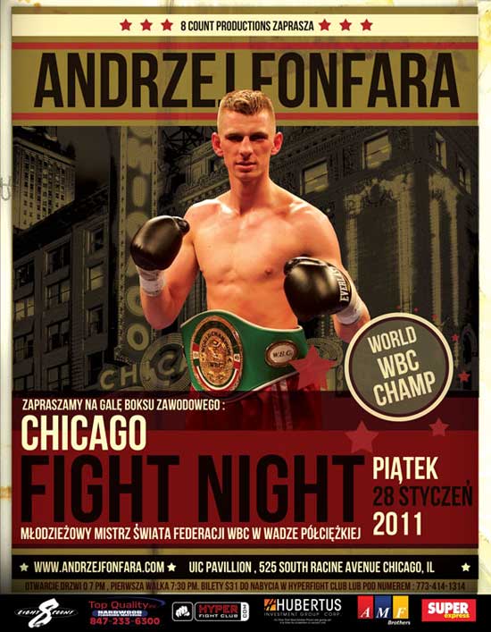 Młodzieżowy mistrz świata WBC Andrzej Fonfara(15-2, 6 KO) wróci dwudziestego ósmego stycznia. Jego przeciwnikiem jest