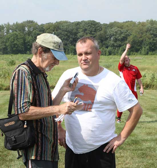 Trener Tadeusz Cięzki po meczu nie miał szczęśłiwej miny – udziela wassnie wywiadu dla naszej strony internetowej