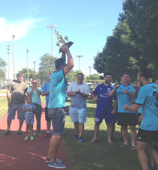 Piotr Kiełbasa z pucharem dla Szaflar za zdobycie Pucharu Ligi