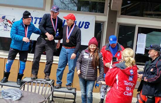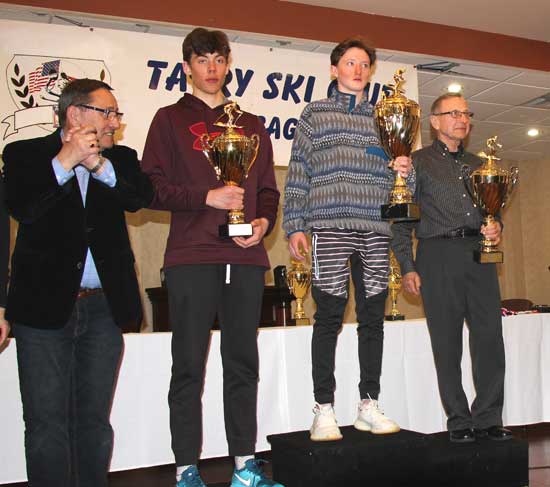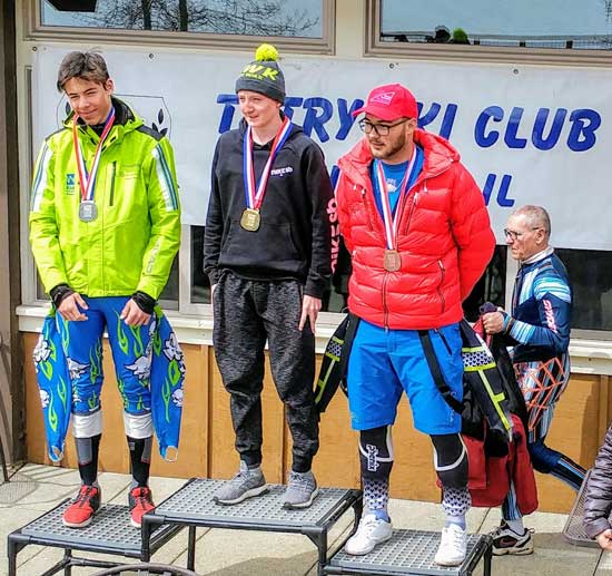 Najlepsi w XX Międzynarodowych Mistrzostwach Polonii w Narciarstwie Alpejskim – na najwyższym stopniu podium Jakub Marusarz. Po lewej Konsul honorowy RP w Kolorado – Tomasz Skotnicki