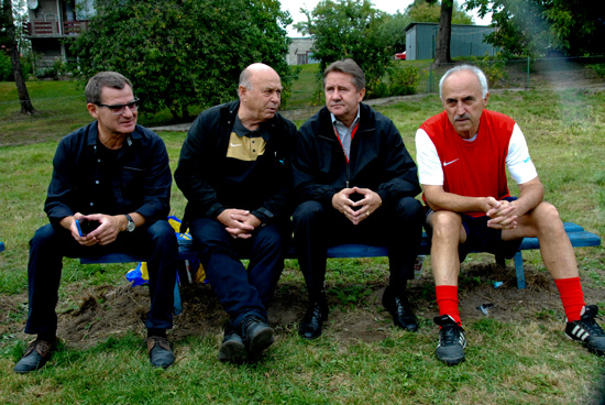 Bogdan Kłęk, Grzegorz Lato, Marian Nowacki i Jan Domarski podczas tyrnieju z okazji 50-lecia Śmigna