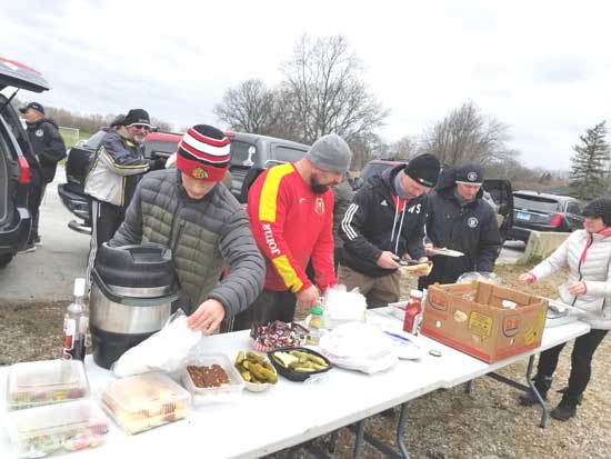 A po zakończeniu spotkania oba zespoły zostały zaproszone na poczęstuek,przygotowany przez małżonkę prezesa góralskiej ligi – Bernadkę Grela. Poczęstunek na wolnym powietrzu smakował, chociaż wiatr usiłował zgasić ogień w grilu. Serwowano kiełbaski, gołąbki, ciasta, a na rozgrzewkę było grzane wino i…cytrynówka.