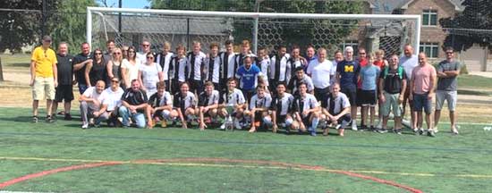 Widoczne także trofeum, które zespół wygrał w sezonie halowym. Dopiero teraz młodzi chłopcy mieli okazję się nim nacieszyć, bowiem prezes ligi Ante przywiózł je na ten sparingowy mecz