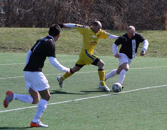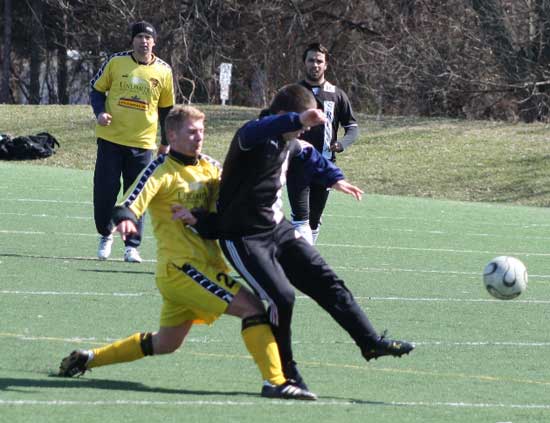 Bramki: Roman Koszat 2, Marek Hornik z rzutu wolnego, Ryszard Bury, Andrzej Gasienica – Bartek Hypta 2, Phil Wicyk, Andrzej Kaminski