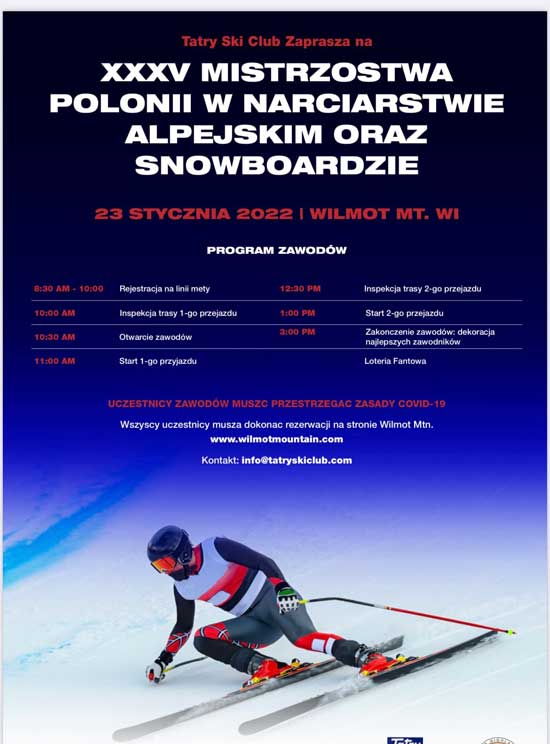 Narciarze oo grudniowym prologu CMSC w Ski Brule (Michigan)) wracają na trasy podczas weekendu 7-9 stycznia. Na stoku Sunburst odbędą sie kolejne zawody z cyklu CMSC oraz MMSC. Tydzień później, w sobotę 15 stycznia po raz pierwszy w tym sezonie zaplanowano zawody CMSC blisko Chicago, czyli w Wilmot. Natomiast w niedzielę 23 stycznia czekają nas na tym stoku Polonijne Mistrzostwa w Narciarstwie Alpejskimi Snowboardzie.. Bogaty w imprezy dla narciarzy miesiąc zakończą zawody CMS.C. w Devils Head.