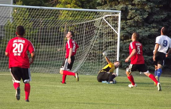 Sądziliśmy, że Eagles zaatakuje w drugiej połowie, nie mając nic do stracenia, a to jednak Schwaben okazale się zespołem lepszym, opanował środek pola, wyprzedzał naszych zawodników, stwarzając często zagrożenia pod bramką Piotra Śliwy. W 60 min. zostawiono wolne pole napastnikowi rywali, a  ten z ostrego kąta posłał piłkę w długi róg. Nadal trwała lekka przewaga Schwaben – w pewnym momencie wspaniale wyszedł z opresji w pojedynku sam na