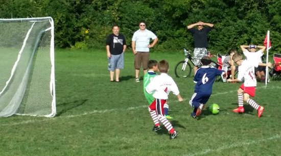 Ośmiolatkowie z Eagles Hickory Hills na tle Lake Michigan i downtown Chicago oraz w grze (poniżej)    Foto – Darek Szczapa