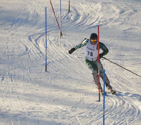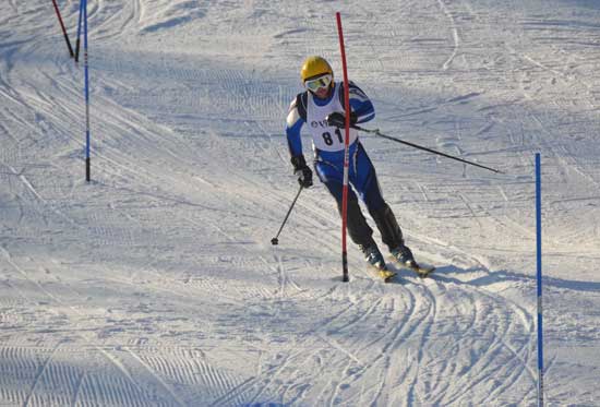 Michał Tylka na trasie slalomu specjalnego w Ski Brule, w którym zajął drugie miejsce