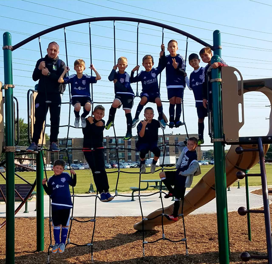 Zespół under-1-0 ze swym trenerem Łukaszem Szparą bezpośdnio po meczu skorzystał z urządzeń nowo otwartego placu zabaw ReccPlex