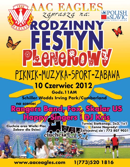 Rodzinny festyn plenerowy , czyli piknik AAC Eagles – w najbliższą niedzielęe  10 czerwca od godz. 12  w południe w Schiller Park skrzy. Cumberland & Irving Park