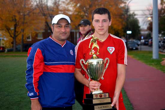 Kapitan Wisly Krzysztof Łagowski ze zdobytym dla Wisły pucharem