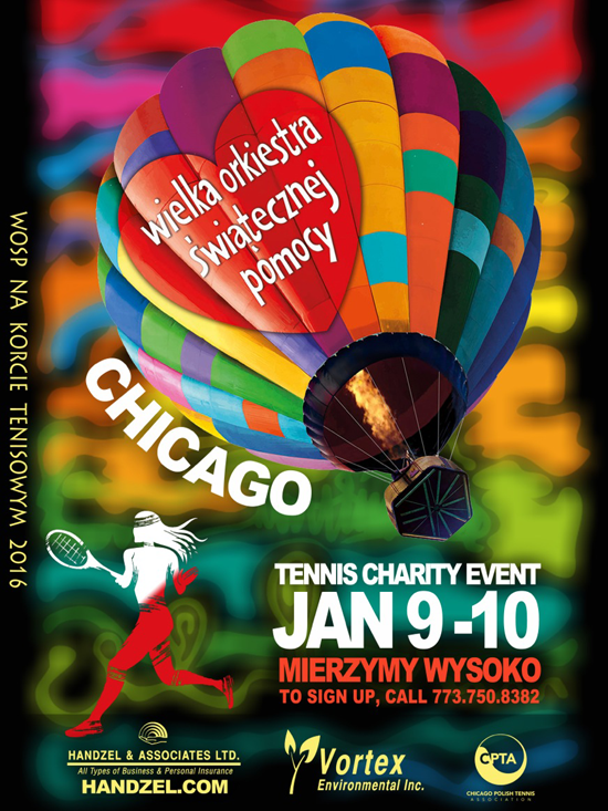 Dopiero co zakończył się świąteczno-noworoczny turniej tenisowy Maćka Jóźwiaka, a już w najbliższą sobotę i niedzielę czeka nas kolejne spotkane na kortach. To Tennis Charity Event, nietypowy turniej – czyli tenisowy finał Wielkiej Orkiestry Świątecznej Pomocyu 2016. Będzie to dwudniowy drużynowy turniej. 2-osobowe drużyny lub pojedyncze osoby (partnerzy zostaną wówczas dobrani) należy zgłaszać do Maćka Józwiaka, tel. 773-750-8382.