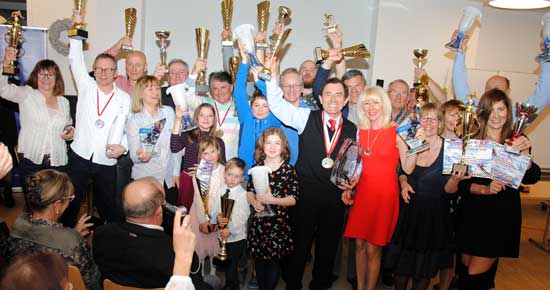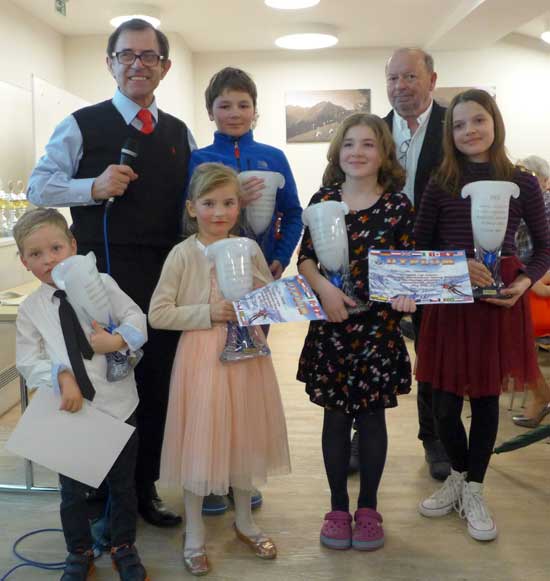 Pamiątkowa fotografia zwycięzców z trofeami. Aparthotel. Kleinwalsertal. 23 marca 2018 r.